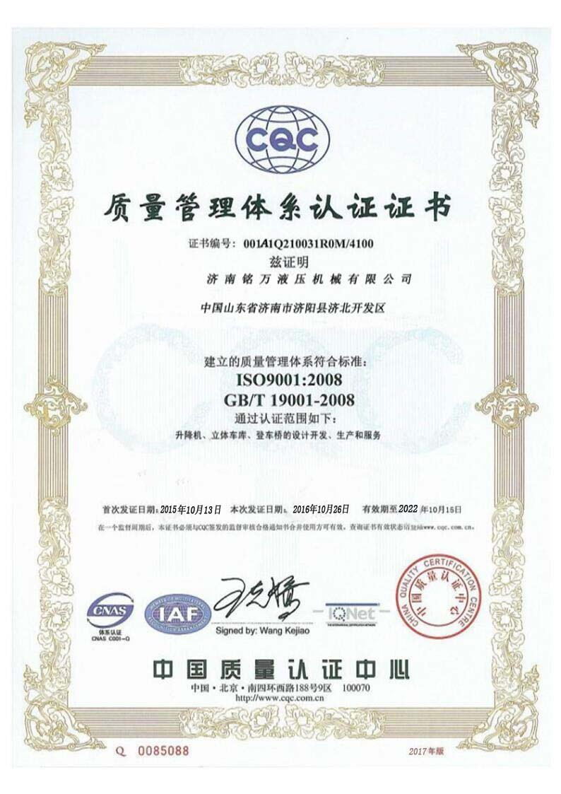 +濟(jì)南銘萬液壓機(jī)械有限公司【原濟(jì)南機(jī)械廠】,是全國制造液壓升降機(jī)、升降平臺(tái)的廠家,產(chǎn)品有八大系列六十多個(gè)品種,規(guī)格齊全、質(zhì)量穩(wěn)定、安全可靠、方便快捷;產(chǎn)品銷往全國各地,深受用戶好評(píng)。升降機(jī)廠家技術(shù)力量雄厚,產(chǎn)品設(shè)計(jì)先進(jìn)、工藝成熟、實(shí)驗(yàn)檢測(cè)手段完善,“質(zhì)量第一,用戶至上”是我們的宗旨。 本公司采用先進(jìn)的管理手段,嚴(yán)密的質(zhì)量監(jiān)控體系和良好的售后服務(wù)隊(duì)伍為我們的產(chǎn)品走向市場創(chuàng)造......
